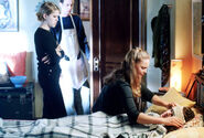 Liz, scared by all of the events of the past few days, hesitates at participating. Max painfully understands, but leads the rest of them through the process in order to save Michael's life. Michael awakens and points to the symbols of the cave painting, explaining it's a map. Once home, Liz mulls over her lack of nerve at the cave. Max interrupts her, and the two discuss what happened. Max tells Liz that after they kissed for the first time, he forgot anything else existed. Max further explains that's not the kind of world he can afford to live in, and gently floats the idea they should take a step back to examine what is going on in their lives. Liz realizes this means they need to stop seeing each other. Max and Liz share a goodbye kiss.