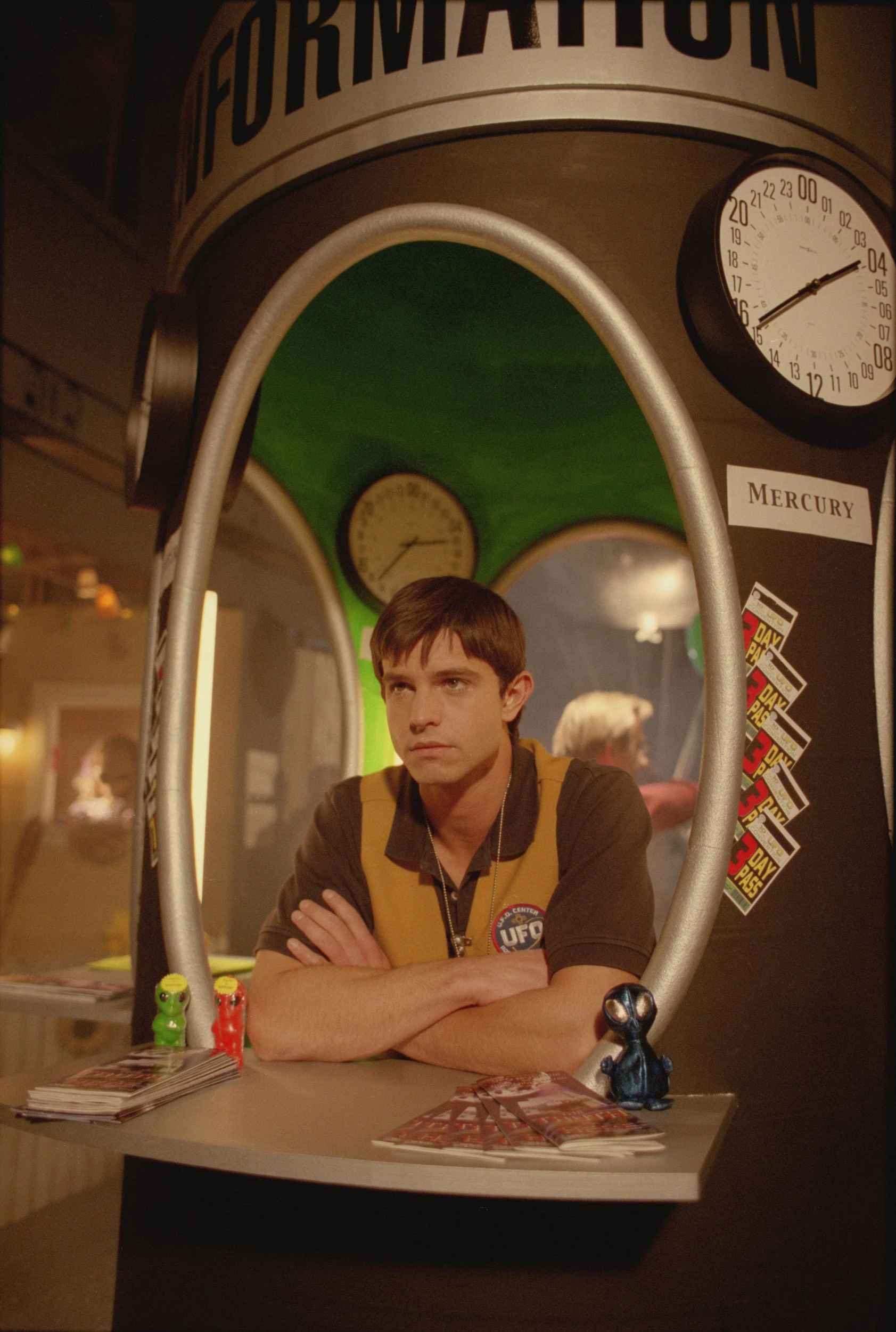 Wanting to get Liz off his mind, Max dives into work at the annual UFO Convention being held at the museum. Max's life is further complicated when he discovers the two civilians who witnessed his healing of Liz at The Crashdown, are back in town and have plans on exposing him as an alien. Valenti soon discovers EVERETT HUBBLE, the man who ruined his own father's career, has come to town for the convention. Thanks to the two civilians ramblings, Hubble becomes suspicious of Max and kidnaps him.